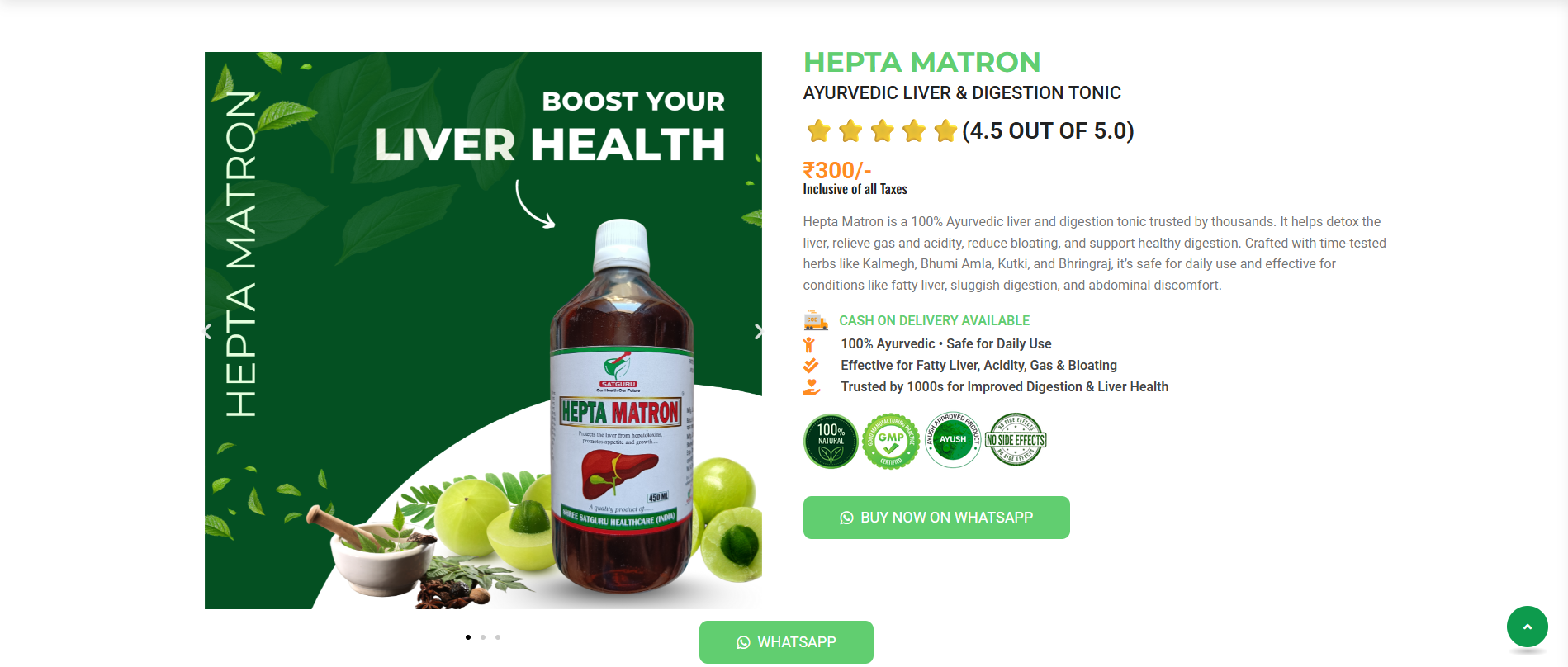 Hepta Matron is an Ayurvedic liver tonic that supports liver detoxification, improves digestion, and provides relief from gas and acidity-related issues.